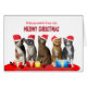 Une carte de Noël drôle et mignonne avec 5 chats assis en rang portant des chapeaux de Père Noël. Les mots Meowy Christmas sont au-dessus des chats.N'importe quel amoureux des chats va adorer! Une carte de Noël pour votre fiancé.