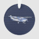 Le vol classique de silhouette de Cessna d'avions pour n'importe quel enthousiaste d'aviation, customisent ceci avec le texte si vous souhaitez. L'avion de Cessna est conçu pour le faire ressembler à un applique argenté de chrome sur un arrière - plan mordant de style de fibre de carbone de bleu marine.