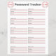 Mot de passe Tracker avec espace pour le nom du site Web ou de l'application, le nom d'utilisateur et le mot de passe.