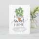 Invite friends and family to your new home with our charming housewarming party invitations, featuring a vibrant green watercolor fiddle leaf fig houseplant illustration with "home sweet home" in soft black script and block typography. Use the template fields to add your custom intro, hose information and party details.
