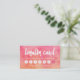 Une carte moderne et élégante de fidélité pour des cheveux et le carte de visite de maquilleur avec le style moderne de lettrage de main balayent la typographie dans le blanc sur un arrière - plan de corail rose peint à la main à la mode d'aquarelle d'ombre. Si vous avez besoin de n'importe quelle personnalisation, n'hésitez pas en me contactant