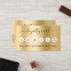 Un faux arrière - plan doré, texte noir Devant : Ajoutez-vous une remise. Retour : Personnalisez et ajoutez votre nom, titre, numéro de téléphone, courrier, adresse de site, logo commercial, code qr à votre site Web ou compte de médias sociaux.