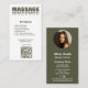 Détendez votre marque avec notre Moss Green Massage Therapist Carte de visite, méticuleusement conçu pour un effet apaisant. Dans un format portrait, l'avant présente un logo de mot personnalisé (Massage), une liste de services en six points et une poignée sociale, le tout accompagné d'un appel à l'action convaincant (CTA : En savoir plus!) et d'un code QR pour plus d'informations. Le côté arrière, conçu avec la tranquillité d'esprit, comprend une photo de profil ronde, nom, titre professionnel, nom de l'entreprise, numéro de téléphone, adresse physique, et des icônes pour l'e-mail et le site Web. Ce modèle personnalisable est parfait pour les massothérapeutes à la recherche d'une carte qui reflète la nature apaisante de leurs services. 🌐 Pour plus d'inspiration en matière de marque et d'assistance personnalisée, visitez www.KBMD3signs.com. 🖊️ Pour toute demande de conception personnalisée ou toute autre personnalisation, contactez-nous à l'adresse info@KBMD3signs.com. 🌿 💆 📇 #MassageTherapistCard #MossGreenDesign #BusinessCardBranding