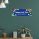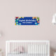Personalize this banner for a fidget spinner theme party. Many elements of this banner can be customized. The background colour is blue, however you change that by clicking on the Customize button. Each fidget spinner can be moved around, made smaller or larger. Click on the Customize button to go into Edit Mode.