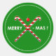Creative field hockey Christmas holiday gift stickers, envelope seals or party favour labels featuring candy-cane hockey sticks.