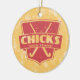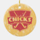 Retro shield style design, with crossed field hockey sticks and the phrase Chicks With Sticks. Fun design for field hockey players and fans! Items can be customized with your own text. Holidays / Christmas ornament. Check my store for many more designs with a cool Christmas background! Great for sports fans' Christmas trees, and excellent gifts for your sports mad family and friends.