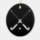 Ornament with a silhouette of a crossed field hockey sticks. Customize the back with a name and/or year for that personal touch. Available in different colours and on other products at my store.