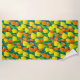 Beach Towel in a pattern of orange and yellow tulips and green leaves in a field