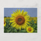 Postcard with a photo of a field of beautiful sunflowers against a dark blue sky. Add your own text.