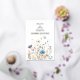 A beautiful white invitation with Rose Gold Text and image of field wildflowers in blue, yellow and cream.