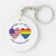 Deux coeurs côte à côte. L'une présente le FLag des Etats-Unis, l'autre Gay pride. Lit, en lettres bleues, "Fier d'être un Gay Américain". Belles pensées pour la Saint Valentin, le mois Gay pride ou à n'importe quel moment vous voulez briller!
