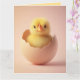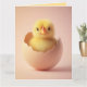 A fluffy yellow chick with an adorably fierce expression peeks out from a cracked eggshell against a soft pastel background. Perfect for Easter themes, baby products, or playful branding.