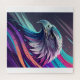 Fierce Neon Eagle — Stylized Head with Geometric Jigsaw Puzzle
