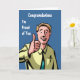 Un dessin d'un homme avec un pouce vers le haut et les mots Félicitations Je suis fier de Vous. Une carte parfaite pour la réussite et l'obtention d'un diplôme ou une promotion. Timbre-poste correspondant disponible.