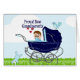 Fiers nouveaux grands-parents, bébé dans un buggy bleu, carte de voeux.