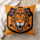 Fiery Lion Illustration Surrounded by Flamboyant Throw Pillow