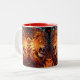 Fiery Lion with Vibrant Mane and Nature Elements Two-Tone Coffee Mug