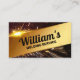 This bold and modern business card design features a striking black background with a subtle golden sparkle, evoking heat and precision. It's perfect for welders, metal fabricators, and other professionals who want to showcase their expertise and passion for their craft.