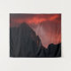 Landscape photograph of a burning red sunset clouds with last sun rays hitting the mountains.