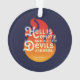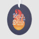 Decorate your Christmas tree with this round literary ornament featuring the quote from William Shakespeare’s The Tempest “Hell is empty, and all the devils are here” against an orange fire on a blue background.