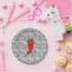 A red and hot pepper cartoon character. Original design with black and white lace pattern in the background.