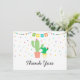 This cute baby shower thank you card features a mom and baby cactus with colourful fiesta flags and confetti.