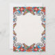 This Fiesta Colorful Flowers Botanical Spanish Wedding Invitation design features a bold and intricate floral arrangement with vibrant red, blue, orange, and green flowers, creating an eye-catching symmetrical border at the top and bottom of the card. The floral clusters are framed by elegant black fern-like patterns, adding contrast and depth to the colorful blooms. The design combines traditional folk art elements with modern vibrancy, making it perfect for a festive and celebratory occasion like a wedding.