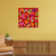 Mexican Fiesta Party Collage Design on Red with Sombreros, Saguaro Cactus, Limes, Peppers, Guitars, Maracas and more.