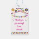 Personalized thank you gifts. Used a different ribbon to attach to gifts. Great quality! Very durable material and good size.