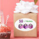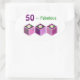 A fun design featuring 3D cubes in shades of purple with white flowers on top. Fifty equals fabulous. The saying can be changed if so desired.