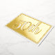 Gold wedding anniversary party invitations with foil design. Celebrate being married for fifty years! These flat cards have foil embellishments on the front. A block of gold foil, with “50th” cut out to show a white background, and bordered in a thin line of gold, is the design on the front. The back of the card is white with a line border with script text in the centre. Add names of the couple, with party information and RSVP using the paragraph provided, or use as a renewing vows ceremony invitation.