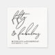 At the bottom, there’s space to personalize with the birthday person’s name, age, and party date, or you can add a second line of text if you prefer. The design uses a clean background for a timeless, minimalist effect, and all colours—including fonts and background—can be customized to match your party theme. Perfect for milestone birthdays, this stylish napkin adds a modern touch to any celebration.