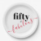 A simple bold statement in black and red mixed fonts. This typography only 50 and Fabulous napkin is stylish and modern and perfect for your birthday celebration.