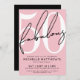 Celebrate in style with this modern blush pink Fabulous Birthday Party Invitation, perfect for a “Fifty and Fabulous” theme or any fabulous milestone. The design features a large white “50” across most of the card, with “fabulous” written in bold black handwritten script layered over it for a sleek, modern look. The party details sit neatly at the bottom in black sans serif font, keeping the layout minimal and stylish.