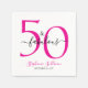 Modern Minimal Fifty and Fabulous pink and black name date 50th birthday paper napkins that you can personalize for your fiftieth birthday party celebration. The "50 and Fabulous" is set using trending bold font typography. Text colors can be changed using the edit menu.