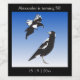 Two black and white stylized magpies meeting each other on a blue and white background. Customize by adding your message or a date to be commemorated.