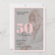 Script Fifty and Fabulous photo overlay pink text 50th birthday invitation that you can personalize and send out for your fiftieth birthday party celebration. The opacity of your uploaded photo and the text colours can be changed using the edit menu.
