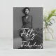 Make a bold statement with this modern “Fifty and Fabulous” photo birthday invitation featuring a striking black and white portrait background with oversized handwritten script typography.