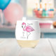 Fifty and Fabulous Pink Flamingo Custom Stemless Wine Glass
