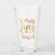 Elegant glass for a special lady that turned 50! This typography design features a faux gold font in hand lettered script that says "Fifty" with pink fonts following "& FABULOUS." There are hand painted watercolor flowers (camellia and magnolia) in pink and cream around the texts.