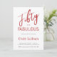Fifty and Fabulous script minimal red and black modern 50th birthday invitation that you can personalize and send out for your fiftieth birthday party celebration. The words "Fifty and Fabulous" are set using popular script font typography. The text colors can be changed using the edit menu.