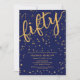 Fifty Blue Gold Glitter Modern 50th Birthday Party Invitation