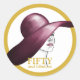 Add a touch of elegance to your milestone celebration with these Fifty & Fabulous custom round stickers! Featuring a sophisticated gold frame that beautifully nests an illustration of a stylish woman in a dark magenta and mauve hat, these chic stickers are the perfect finishing touch for your birthday event. The gold typography spells out "FIFTY and fabulous", with customizable options to make it uniquely yours. Use them for party favours, envelope seals, gift bags, or décor—wherever you need a little extra glamour for your fabulous celebration!