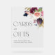 Cette enseigne florale acrylique Cartes et Cadeaux combine la beauté des fleurs, figues et baies bordeaux aquarelles avec un design acrylique clair et élégant. Idéal pour les mariages, les douches nuptiales ou les baby showers, il ajoute du raffinement tout en aidant les clients à trouver facilement la table cadeau. Le style botanique rustique de l’enseigne s’accorde bien avec les thèmes floraux et automnaux. Personnalisez-le avec vos informations d'événement pour créer un point focal unique et élégant.