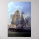 This is a reproduction of Louis Philippe Crepin’s masterpiece, Fight of the Poursuivante of 1819. This is a depiction of a famous sea battle between the French frigate Poursuivante with the Brtish ship Hercules on June 28, 1803. It was a monumental battle of the Napoleonic Wars. The battle took place in the West Indies and thereafter the Poursuivante refitted in Baltimore, Maryland. The original is in the Musee national de la Marine. The artist was forty-seven when he completed this masterpiece and he died in 1851.
