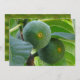 Two perfect round figs create a special nature photograph with the veins of the leaves and the yellow button ends of the fruit adding substance and texture.