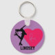 Figure Skater personalized key chain with your name, purple & Pink love Heart.
