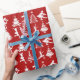 Fun figure skating themed Christmas wrapping paper with a festive red background and alternating Christmas trees and figure skater silhouettes! Make the holidays more fun for your figure skater!