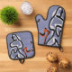 Figure with Feline: Abstract Blue, Orange, B & W Oven Mitt & Pot Holder Set