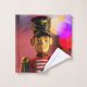 figurine de soldat de jouets de Noël SlipperyJoe cadeaux de gay pride LGBTQIA lumières de boukeh colorées arrière - plan veste rouge éclatante uniforme boutons d'or épaule épaulettes caricaturisme visage artistique noir casquette or emblème aigle rose violet rouge ambiance festive